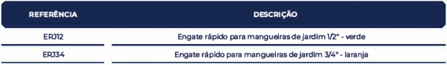Modelos Disponíveis: Para mangueiras de jardim 1/2″ (Referência ERJ12, Verde) e 3/4″ (Referência ERJ34, Laranja).