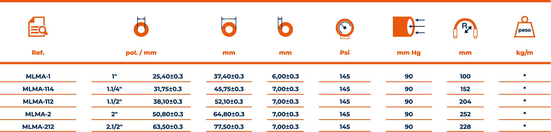 Tubo interno: Borracha sintética atóxica branca e lisa que evita a fixação de resíduos, eliminando contaminações;