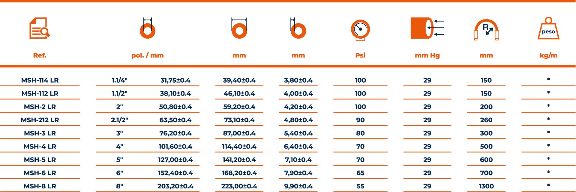 Aplicação: Para serviços pesados na sucção ou descarga de água ou líquidos pastosos. Para uso industrial, agrícola, na irrigação, em caminhão pipa, em limpa fossa, no garimpo, na drenagem, dragagem, em obras de construção civil, boca de lobo, galerias subterrâneas, na mineração, produtos químicos (consultar tabela de resistência química), entre outros.